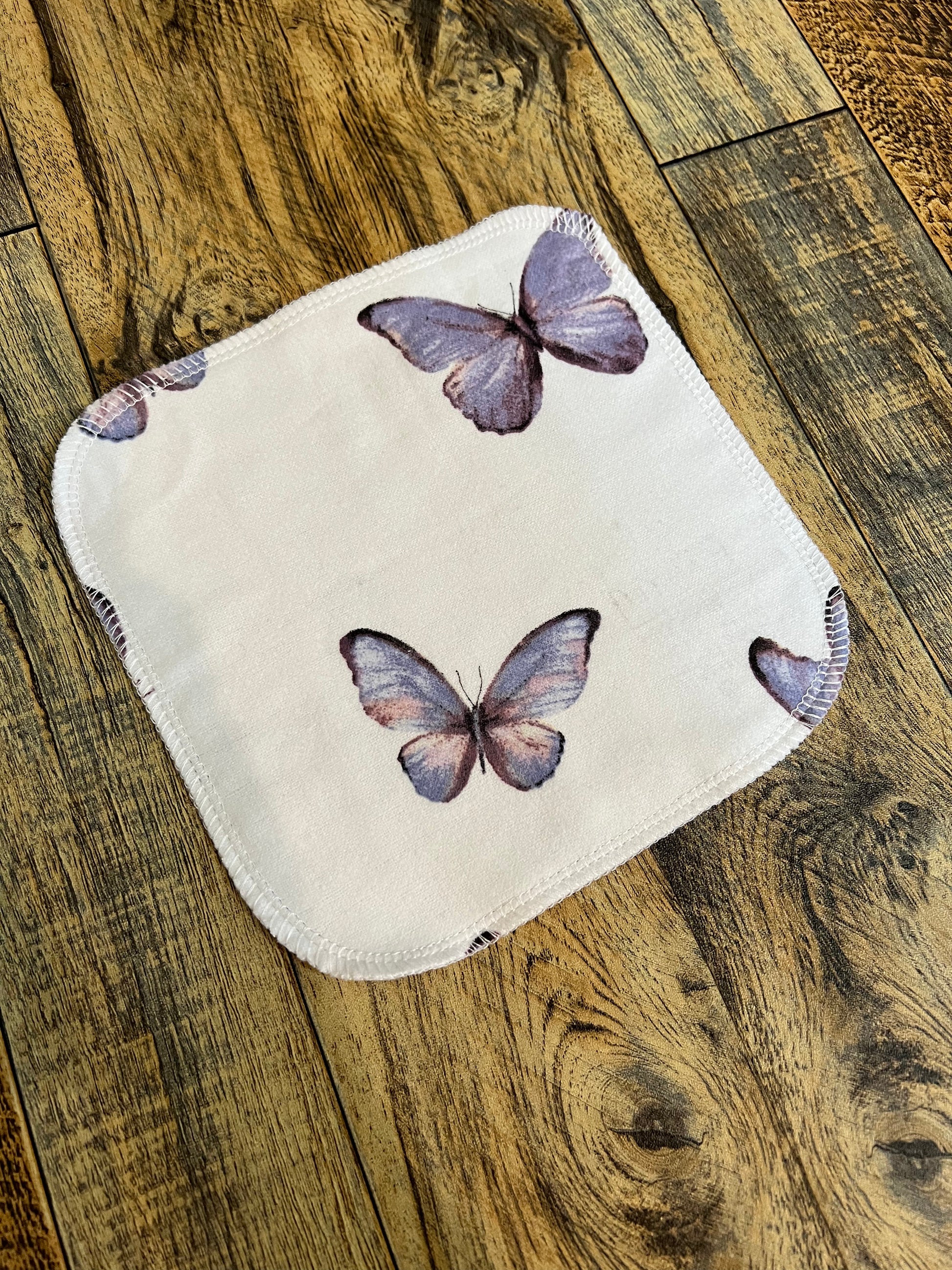 Purple Butterfly 2ply flannel cloth wipes